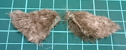 こんなものがふたつ出来ます、これだけでもうなんかかわいいですね。あとはこれをウィッグの適当な場所に縫い付ける…というより、糸を通してウィッグの裏で結ぶ×両耳合わせて4箇所。これで終了です。